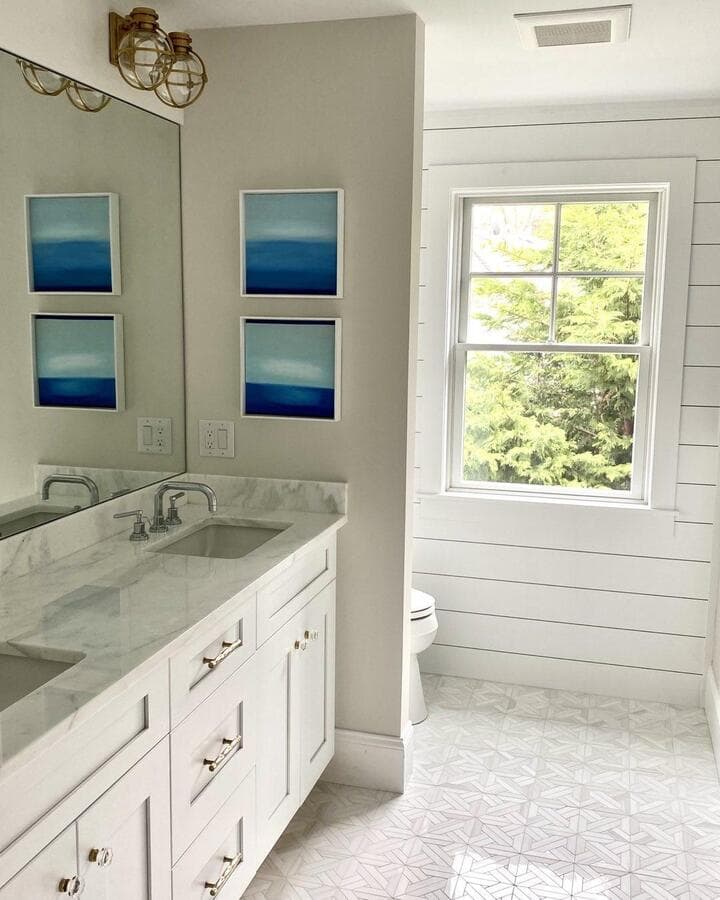 Идеальный линейный светильник для ванной комнаты должен иметь ширину не менее 3/4 ширины зеркала, но не выходить за его края. Для больших зеркал рассмотрите возможность установки пары равномерно расположенных линейных бра.