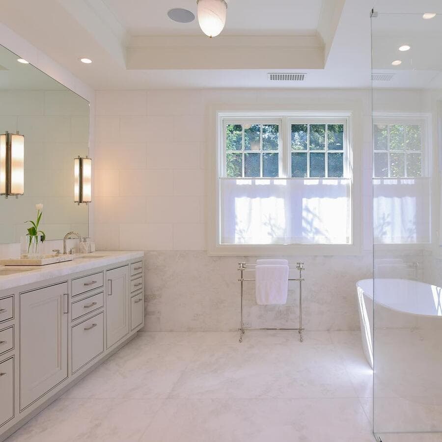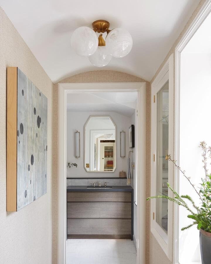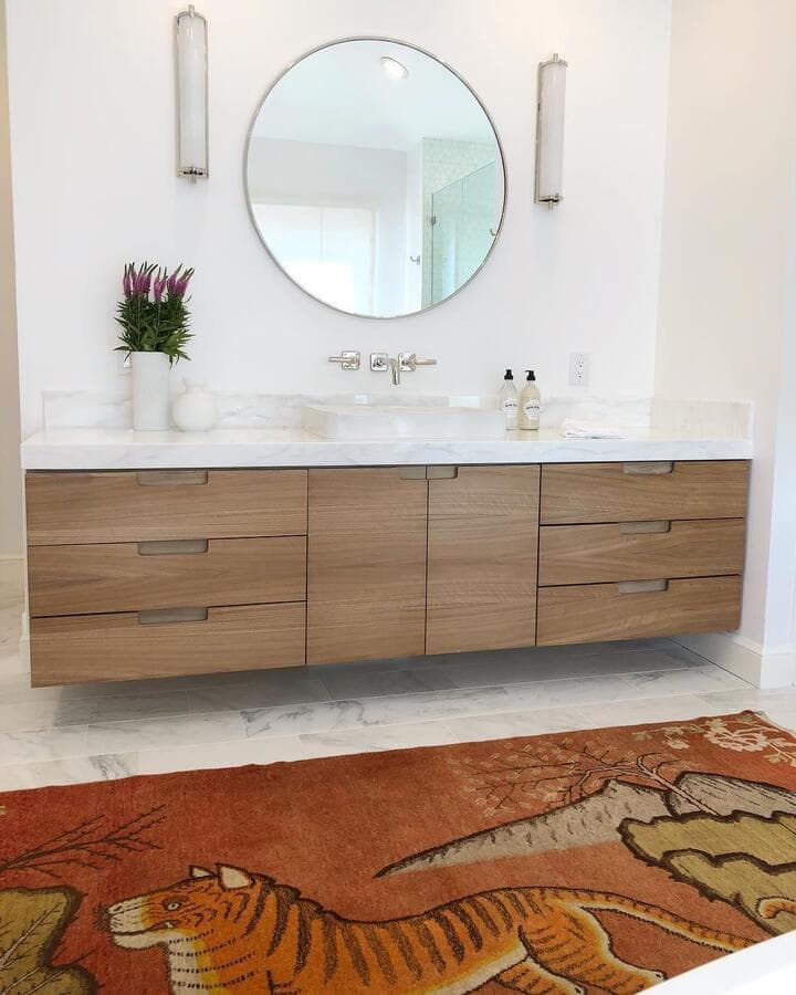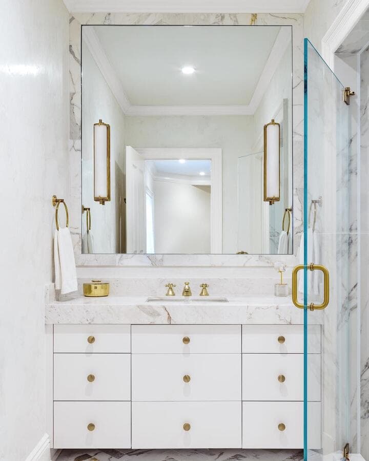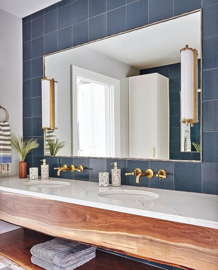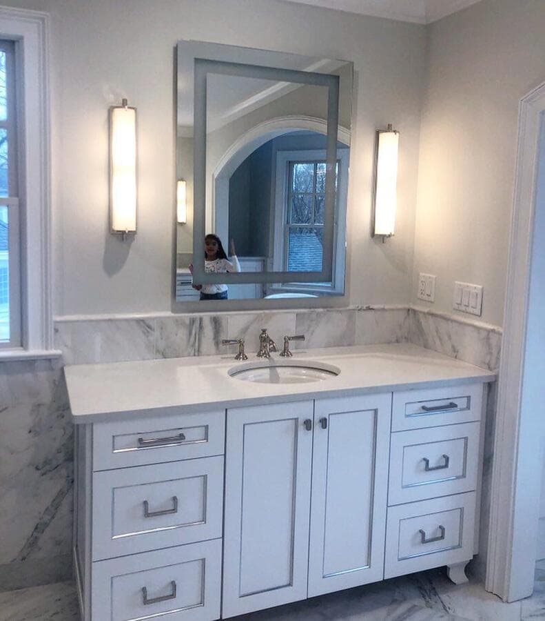 Идеальный линейный светильник для ванной комнаты должен иметь ширину не менее 3/4 ширины зеркала, но не выходить за его края. Для больших зеркал рассмотрите возможность установки пары равномерно расположенных линейных бра.