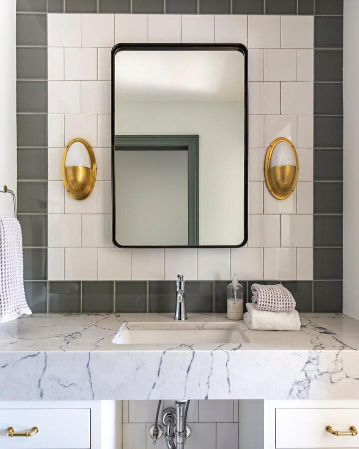 Идеальный линейный светильник для ванной комнаты должен иметь ширину не менее 3/4 ширины зеркала, но не выходить за его края. Для больших зеркал рассмотрите возможность установки пары равномерно расположенных линейных бра.