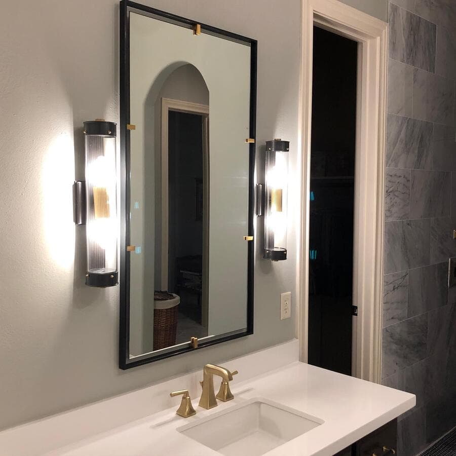 Идеальный линейный светильник для ванной комнаты должен иметь ширину не менее 3/4 ширины зеркала, но не выходить за его края. Для больших зеркал рассмотрите возможность установки пары равномерно расположенных линейных бра.