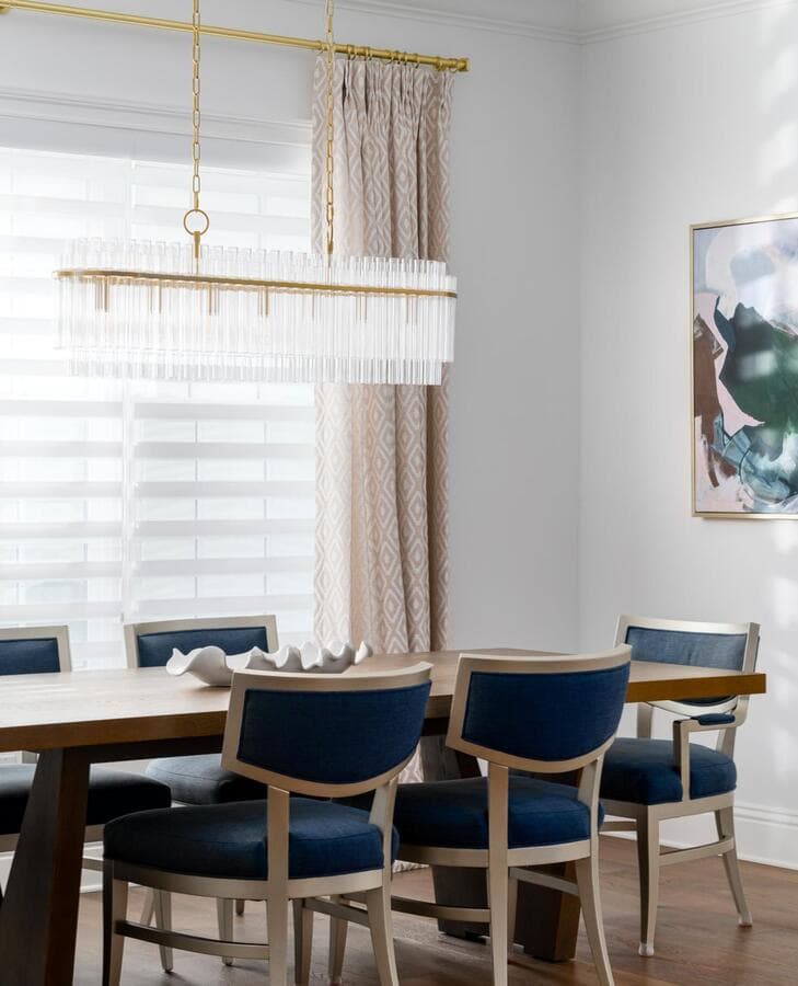 Мы рекомендуем оставлять примерно 75–90 см между нижней частью светильника и поверхностью обеденного стола. Ширина вашего светильника должна быть как минимум на 15 см уже, чем ширина вашего стола.