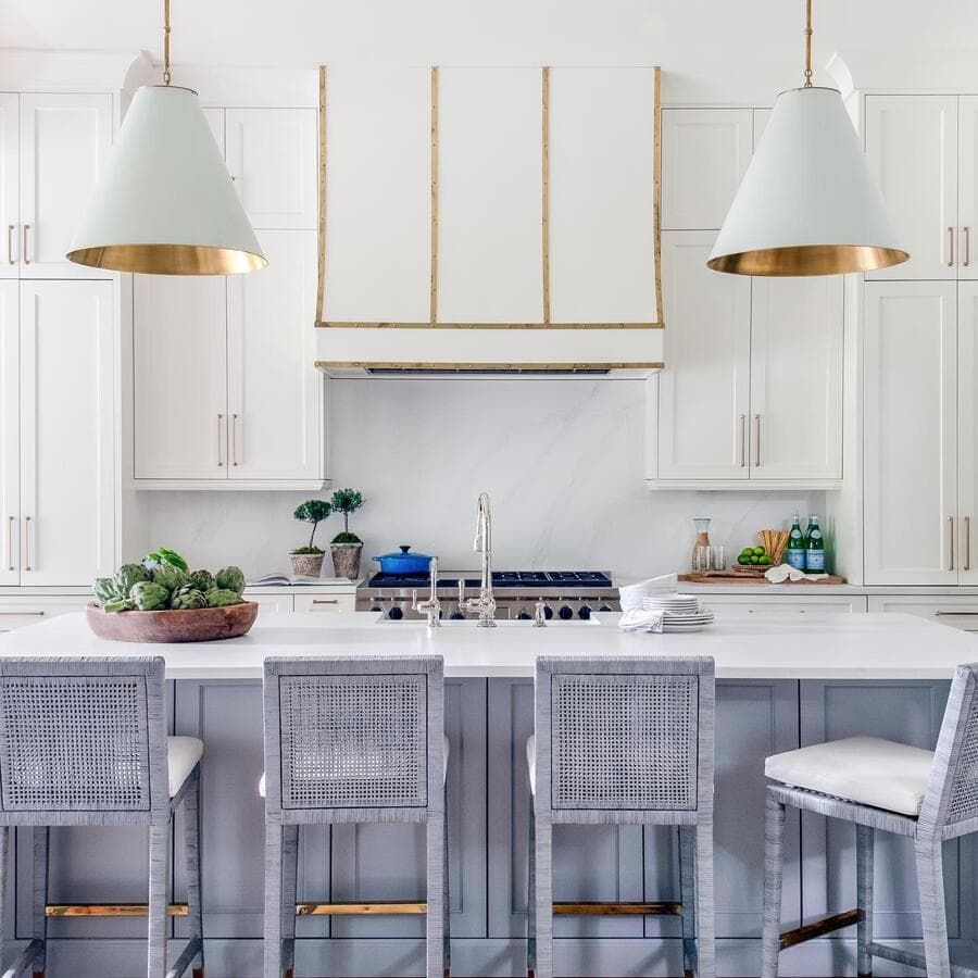 Мы рекомендуем устанавливать потолочные светильники на расстоянии 75–90 см от поверхности кухонного острова. При установке нескольких светильников самая широкая часть светильников должна располагаться на расстоянии не менее 75 см друг от друга для оптимального воздушного потока, распространения света и видимости.