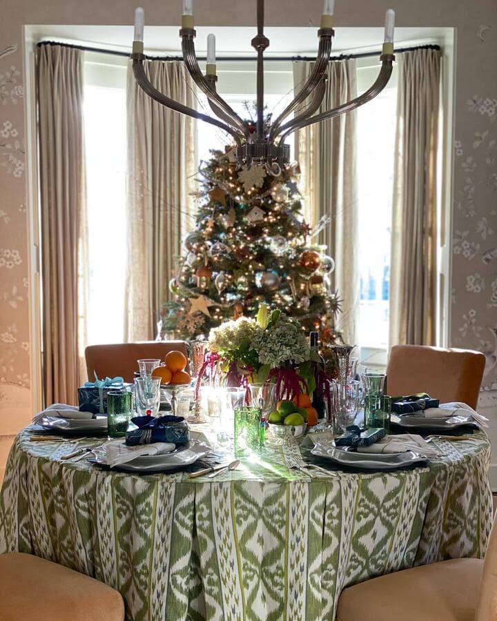 Над круглым обеденным столом