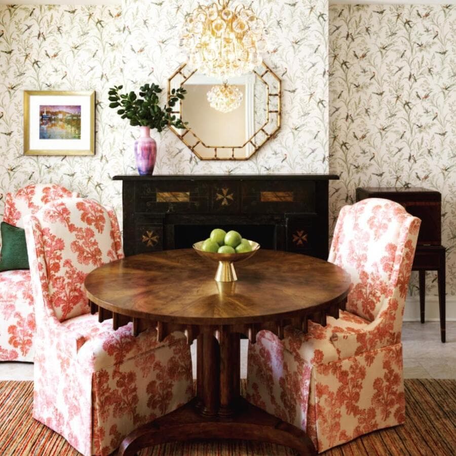 Над круглым обеденным столом