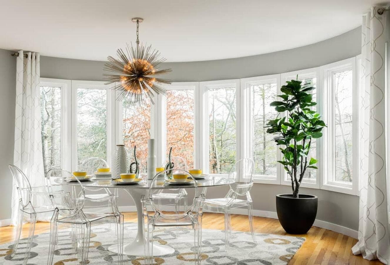 Над круглым обеденным столом