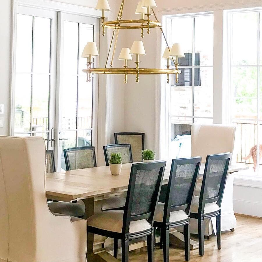 Мы рекомендуем оставлять примерно 75–90 см между нижней частью светильника и поверхностью обеденного стола. Ширина вашего светильника должна быть как минимум на 15 см уже, чем ширина вашего стола.