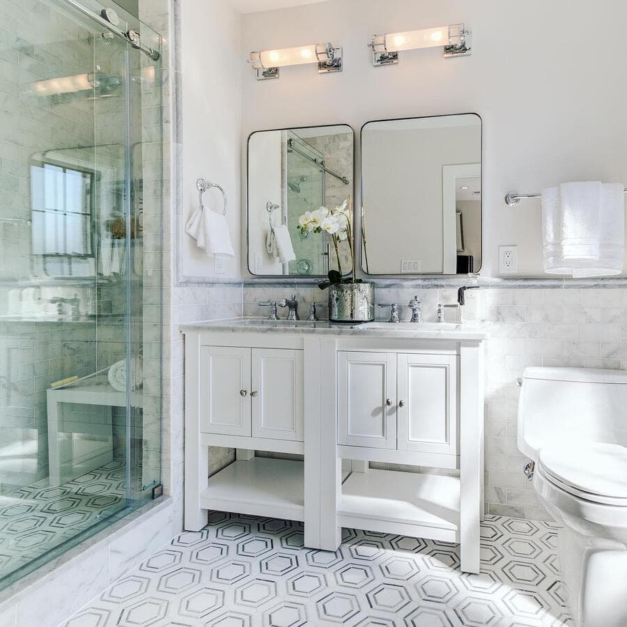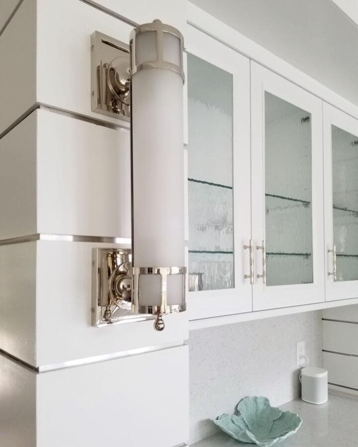 Идеальный линейный светильник для ванной комнаты должен иметь ширину не менее 3/4 ширины зеркала, но не выходить за его края. Для больших зеркал рассмотрите возможность установки пары равномерно расположенных линейных бра.
