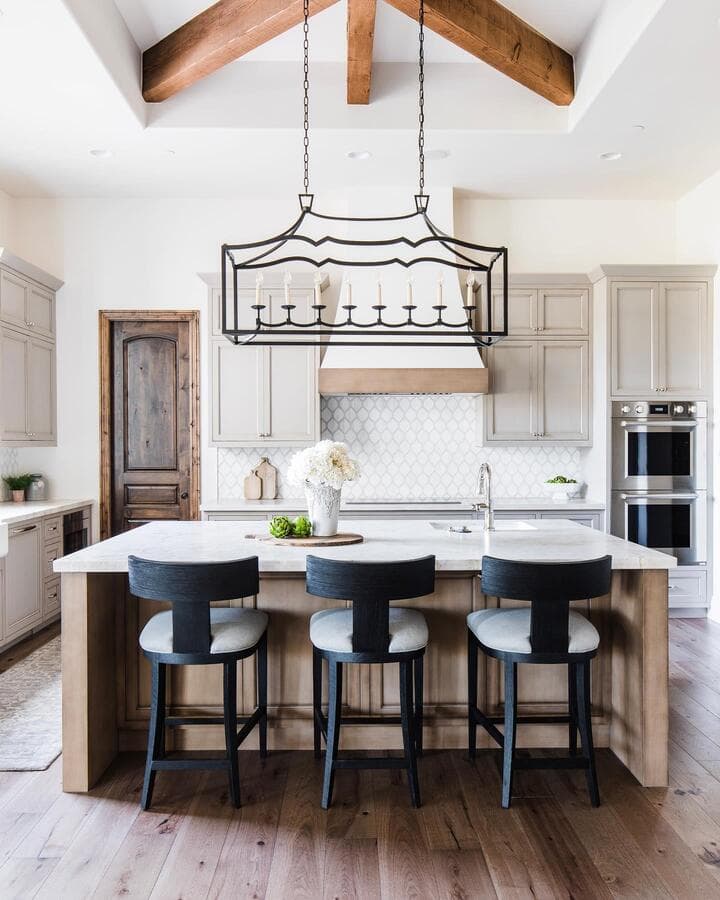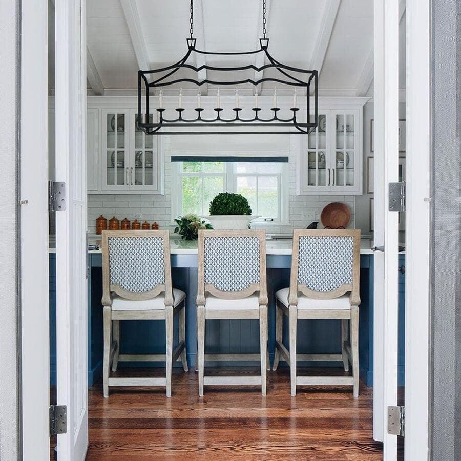 Ключ к определению размера удлиненного светильника - это пропорции. Мы рекомендуем выбирать светильник размером не более 2/3 длины стола или острова. Подумайте о том, чтобы повесить пару линейных светильников для освещения очень длинных поверхностей.