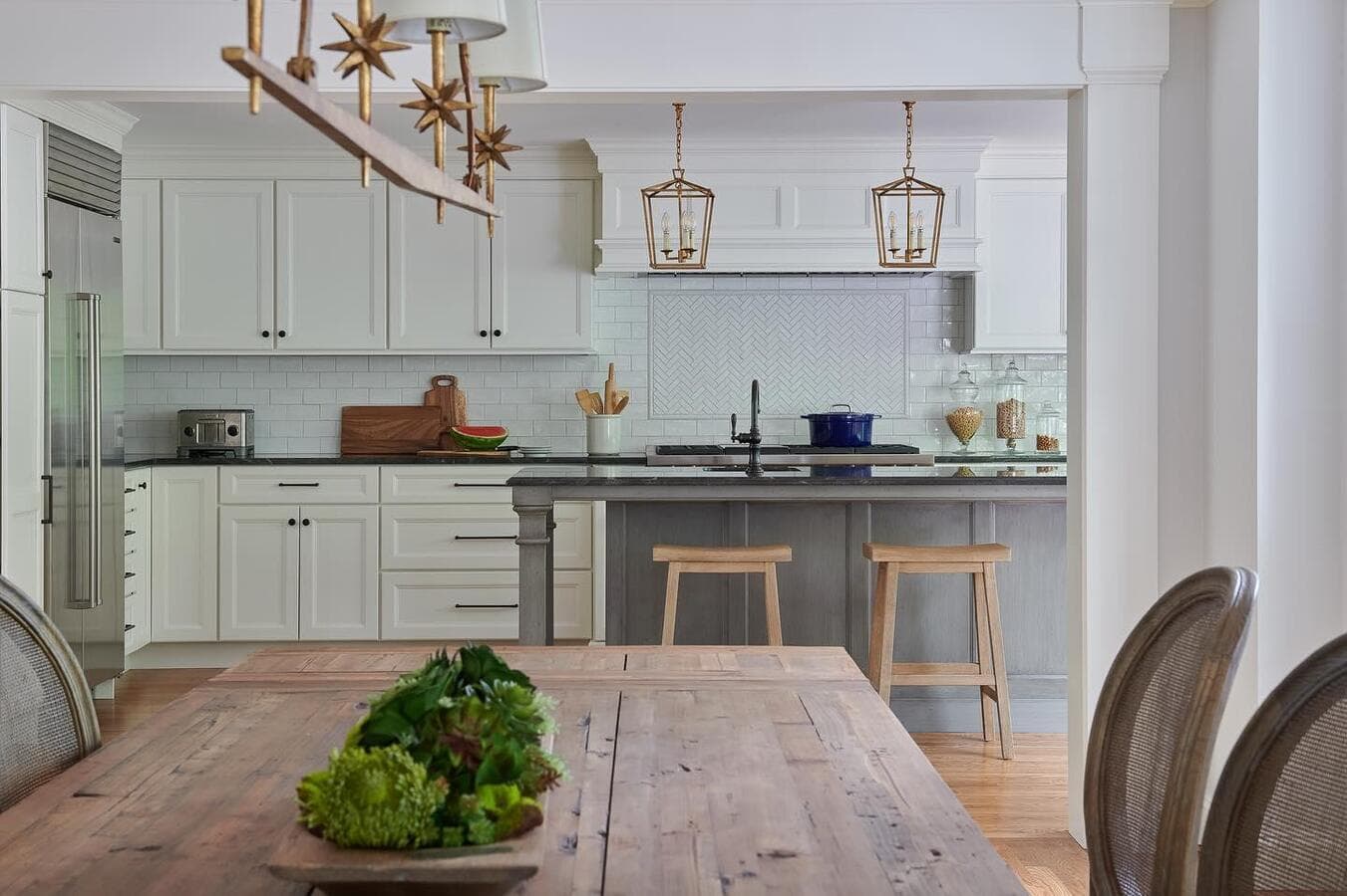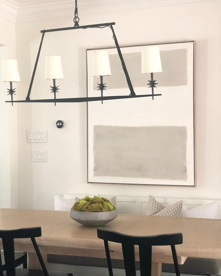 Ключ к определению размера удлиненного светильника - это пропорции. Мы рекомендуем выбирать светильник размером не более 2/3 длины стола или острова. Подумайте о том, чтобы повесить пару линейных светильников для освещения очень длинных поверхностей.