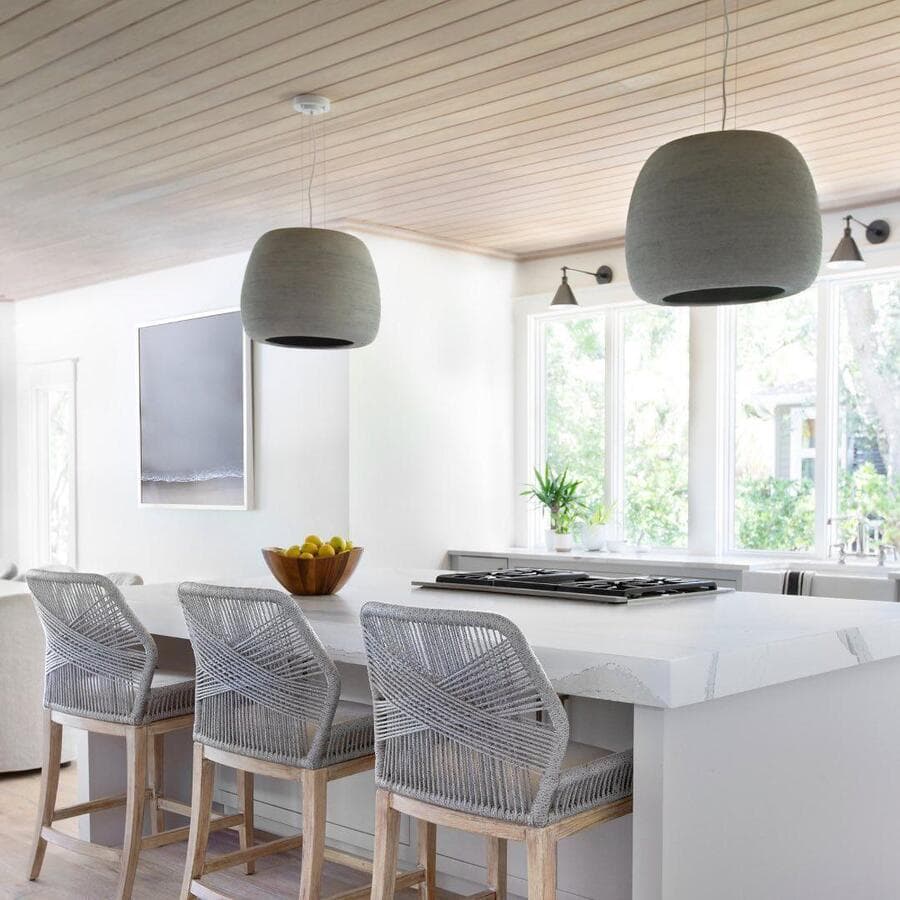 Мы рекомендуем устанавливать потолочные светильники на расстоянии 75–90 см от поверхности кухонного острова. При установке нескольких светильников самая широкая часть светильников должна располагаться на расстоянии не менее 75 см друг от друга для оптимального воздушного потока, распространения света и видимости.