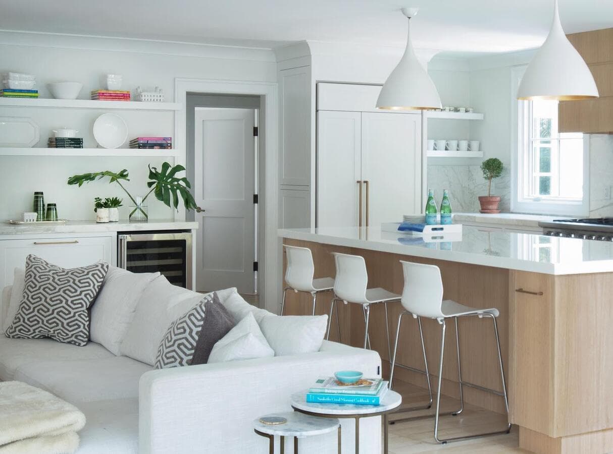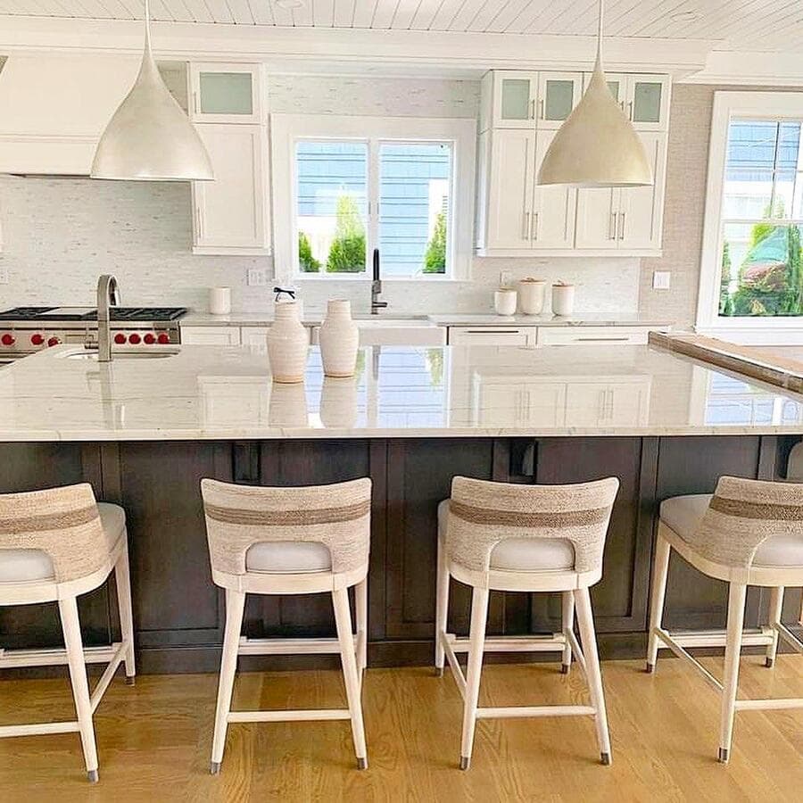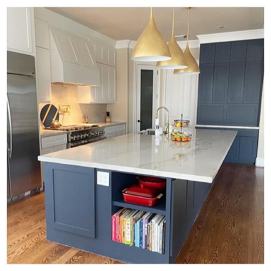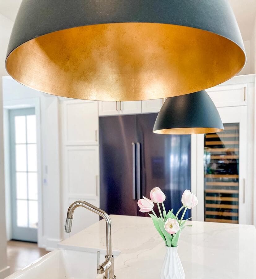 Мы рекомендуем устанавливать потолочные светильники на расстоянии 75–90 см от поверхности кухонного острова. При установке нескольких светильников самая широкая часть светильников должна располагаться на расстоянии не менее 75 см друг от друга для оптимального воздушного потока, распространения света и видимости.