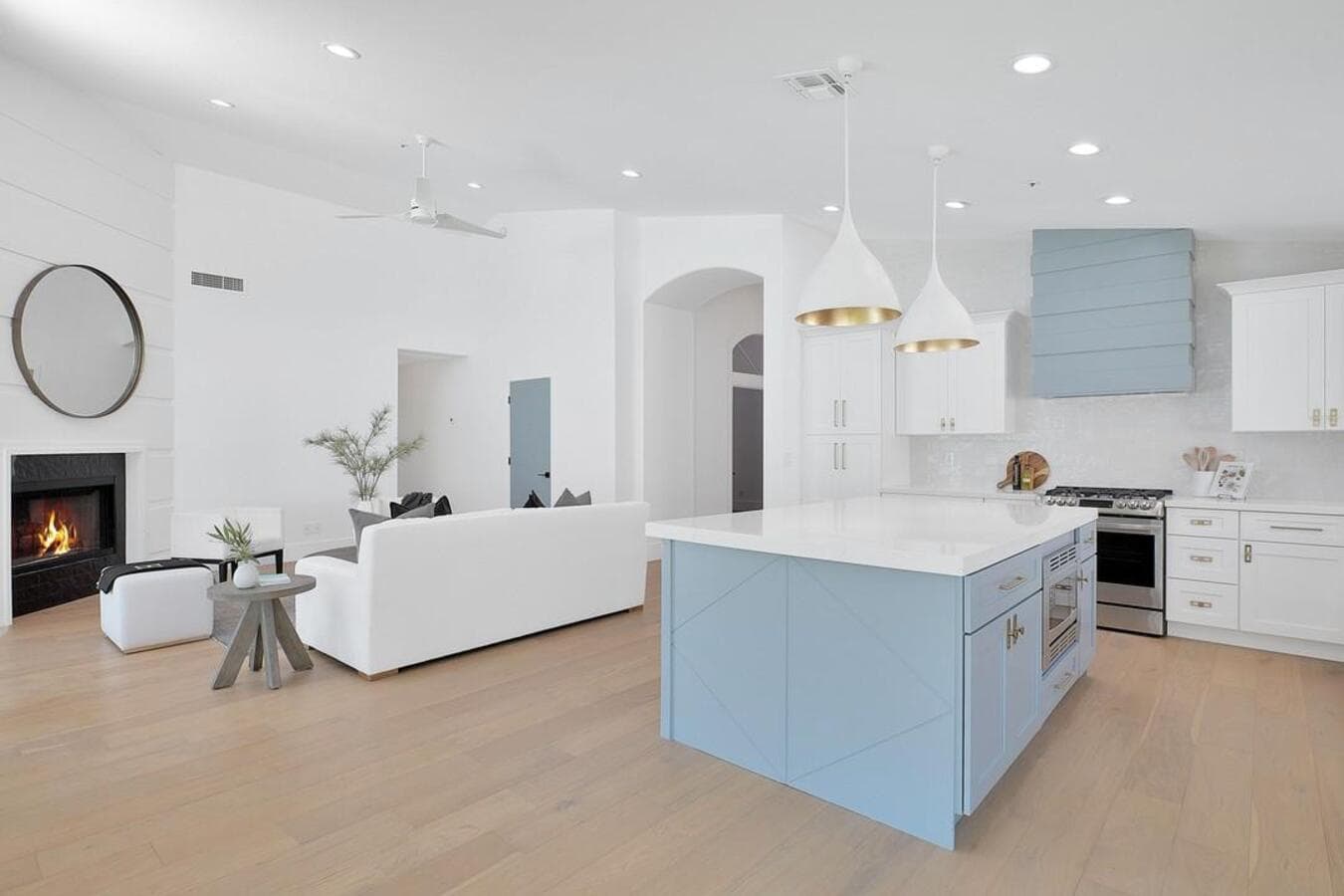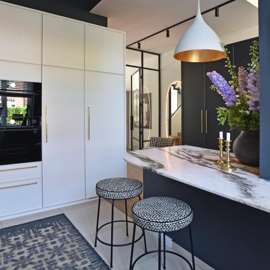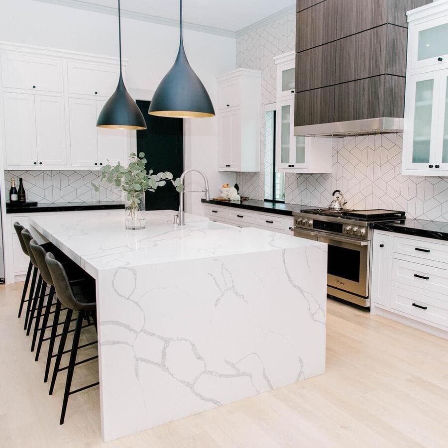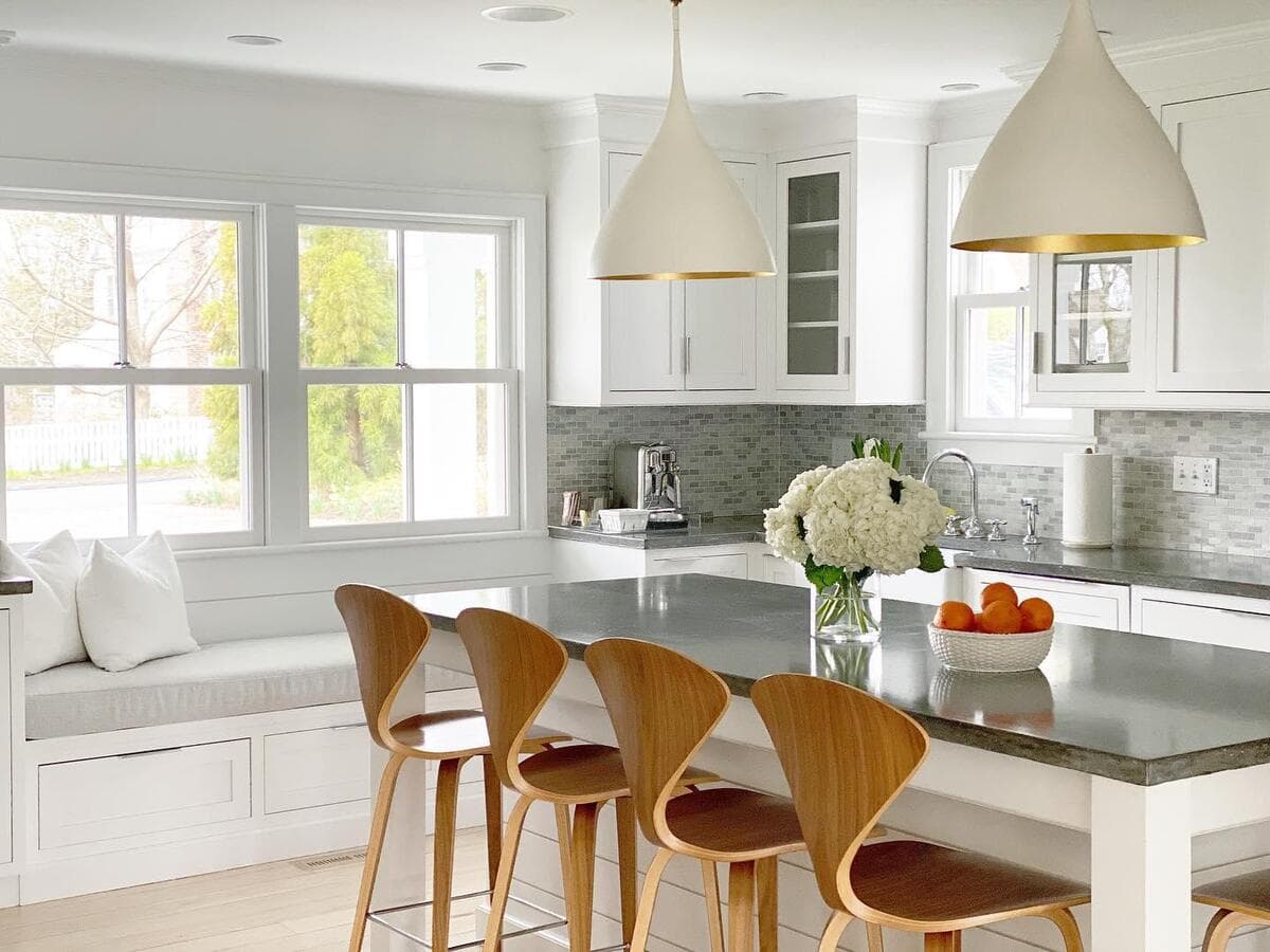 Мы рекомендуем устанавливать потолочные светильники на расстоянии 75–90 см от поверхности кухонного острова. При установке нескольких светильников самая широкая часть светильников должна располагаться на расстоянии не менее 75 см друг от друга для оптимального воздушного потока, распространения света и видимости.