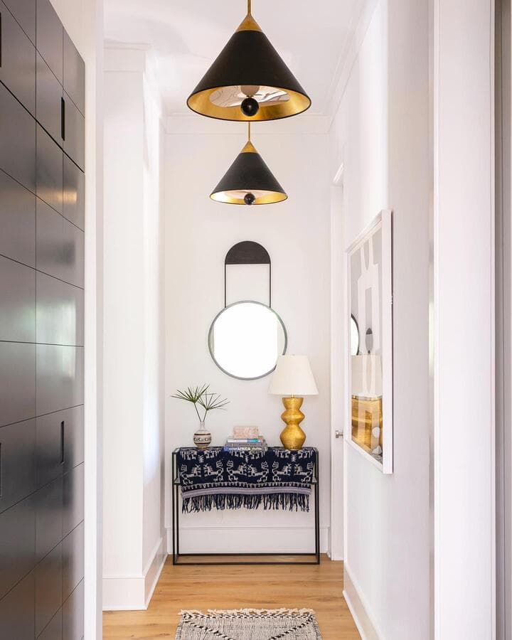 Светильники должны комфортно освещать пороги любых соседних дверей и лица всех членов семьи! Оставьте минимум 18 см от пола до низа светильника и 10 см от самой широкой части приспособления до любой окружающей стены.