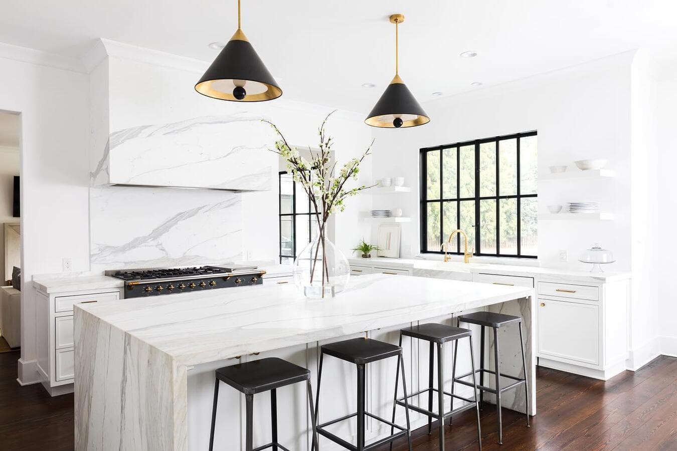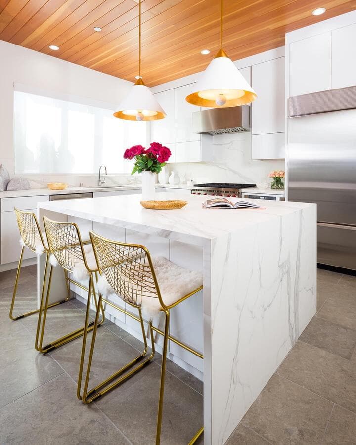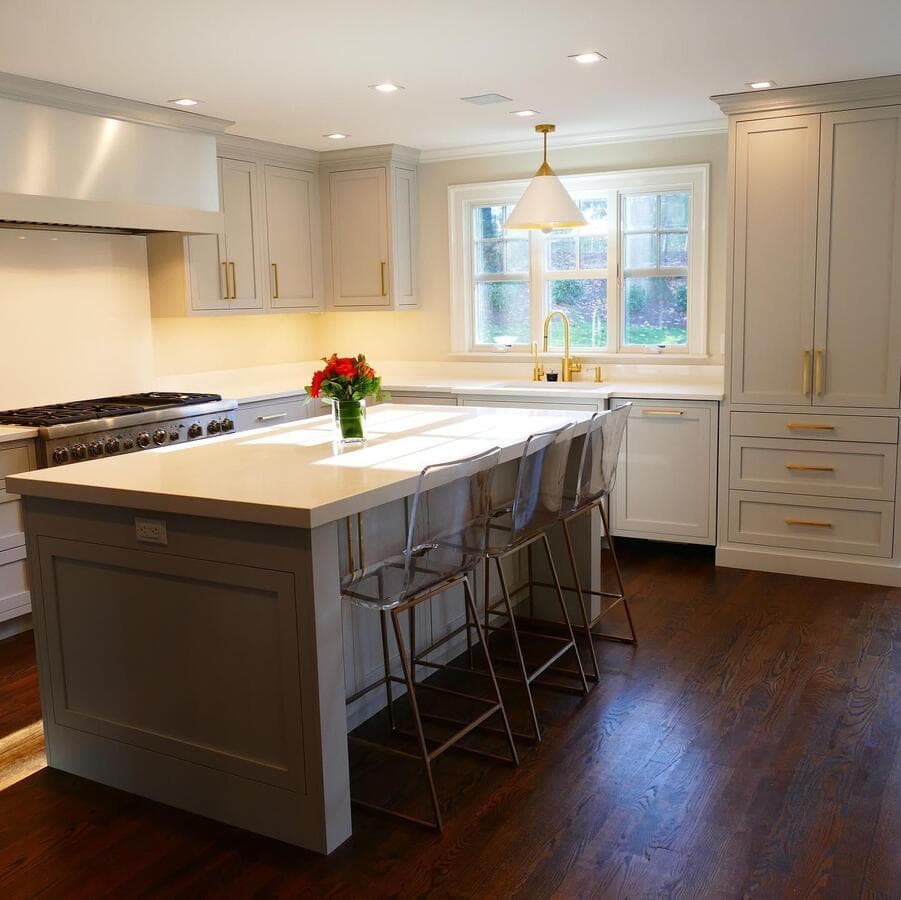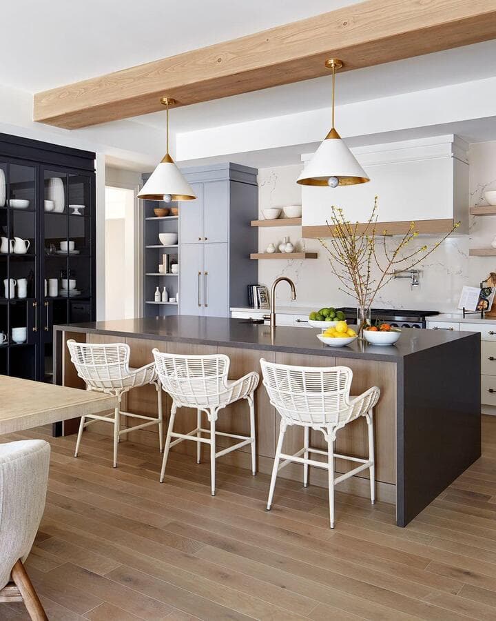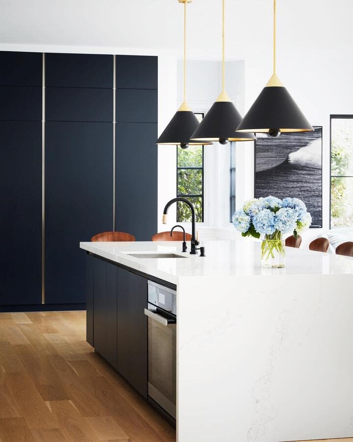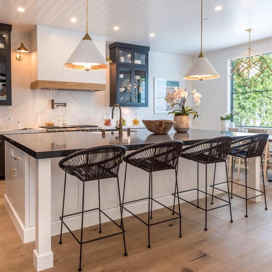 Мы рекомендуем устанавливать потолочные светильники на расстоянии 75–90 см от поверхности кухонного острова. При установке нескольких светильников самая широкая часть светильников должна располагаться на расстоянии не менее 75 см друг от друга для оптимального воздушного потока, распространения света и видимости.
