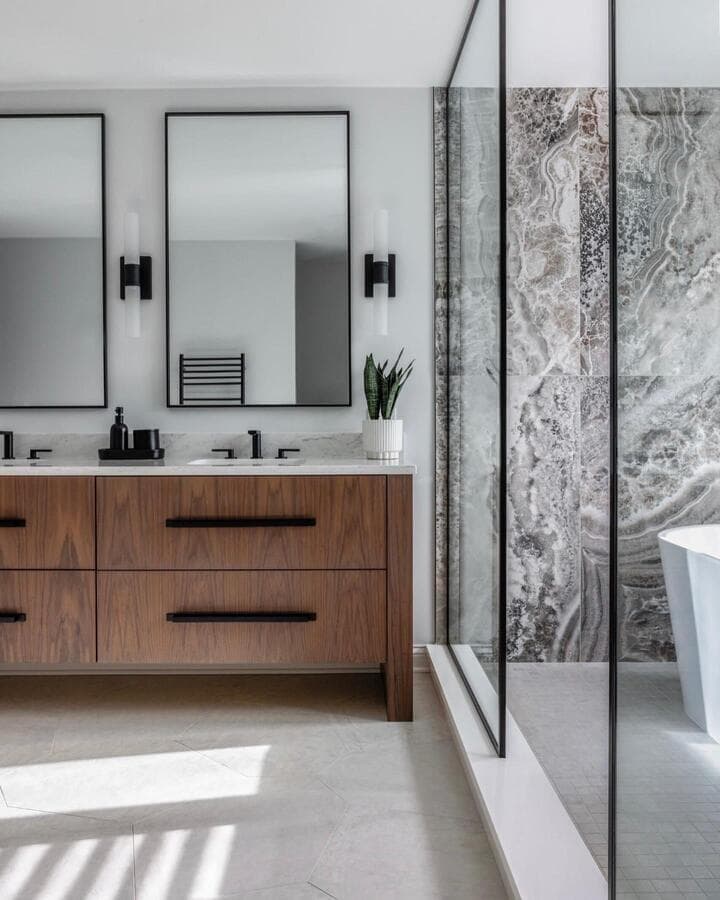 Идеальный линейный светильник для ванной комнаты должен иметь ширину не менее 3/4 ширины зеркала, но не выходить за его края. Для больших зеркал рассмотрите возможность установки пары равномерно расположенных линейных бра.