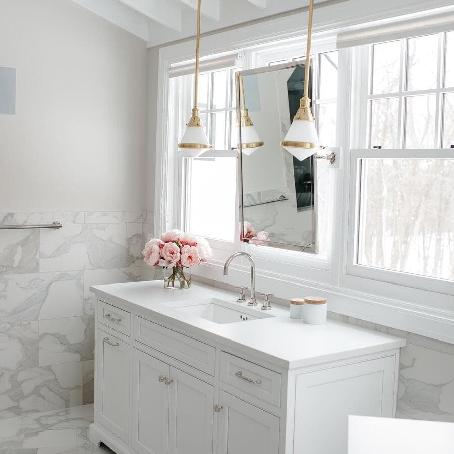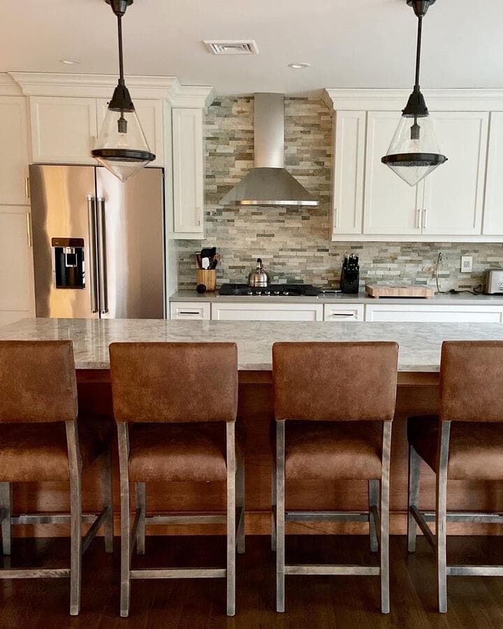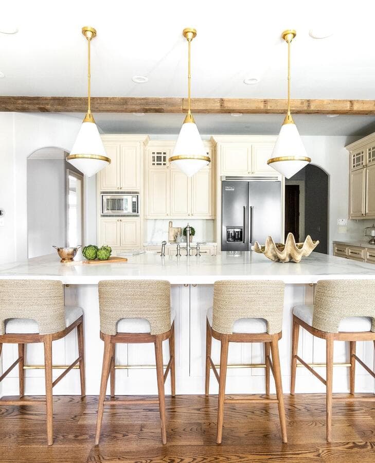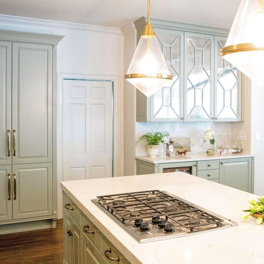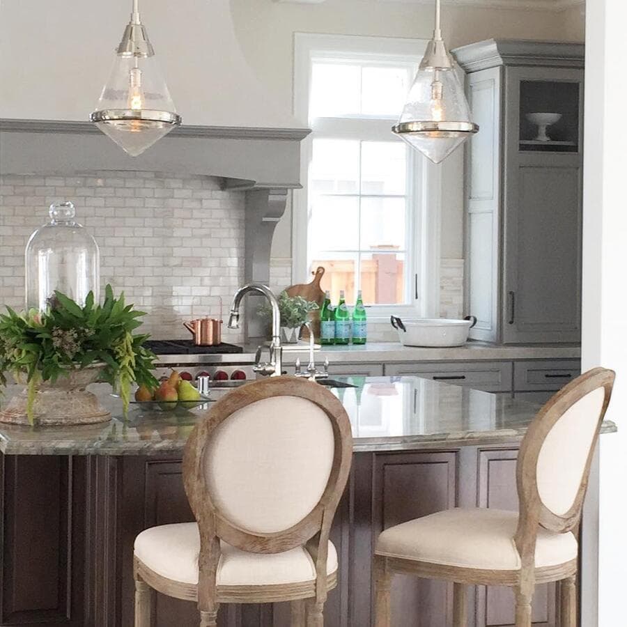 Мы рекомендуем устанавливать потолочные светильники на расстоянии 75–90 см от поверхности кухонного острова. При установке нескольких светильников самая широкая часть светильников должна располагаться на расстоянии не менее 75 см друг от друга для оптимального воздушного потока, распространения света и видимости.