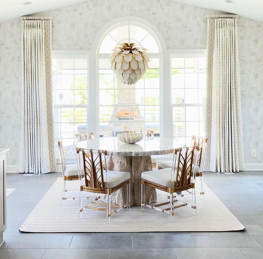 Мы рекомендуем оставлять примерно 75–90 см между нижней частью приспособления и поверхностью стола. Выбирайте светильник шириной от 1/2 до 3/4 диаметра круглого стола.