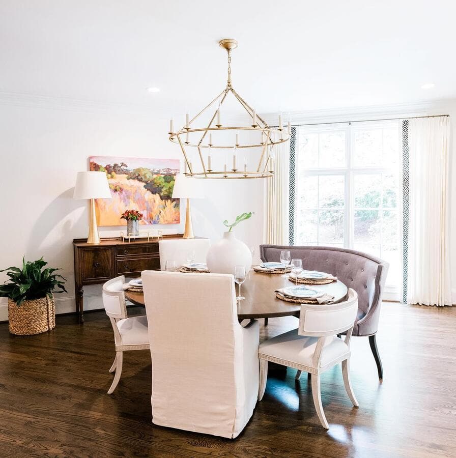 Над круглым обеденным столом