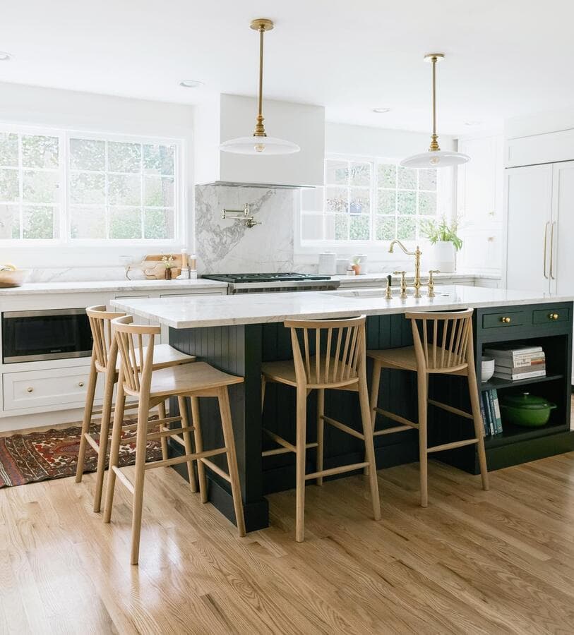Мы рекомендуем устанавливать потолочные светильники на расстоянии 75–90 см от поверхности кухонного острова. При установке нескольких светильников самая широкая часть светильников должна располагаться на расстоянии не менее 75 см друг от друга для оптимального воздушного потока, распространения света и видимости.