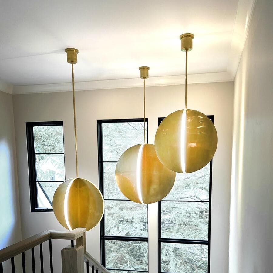Мы рекомендуем устанавливать потолочные светильники на расстоянии 75–90 см от поверхности кухонного острова. При установке нескольких светильников самая широкая часть светильников должна располагаться на расстоянии не менее 75 см друг от друга для оптимального воздушного потока, распространения света и видимости.