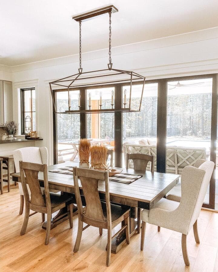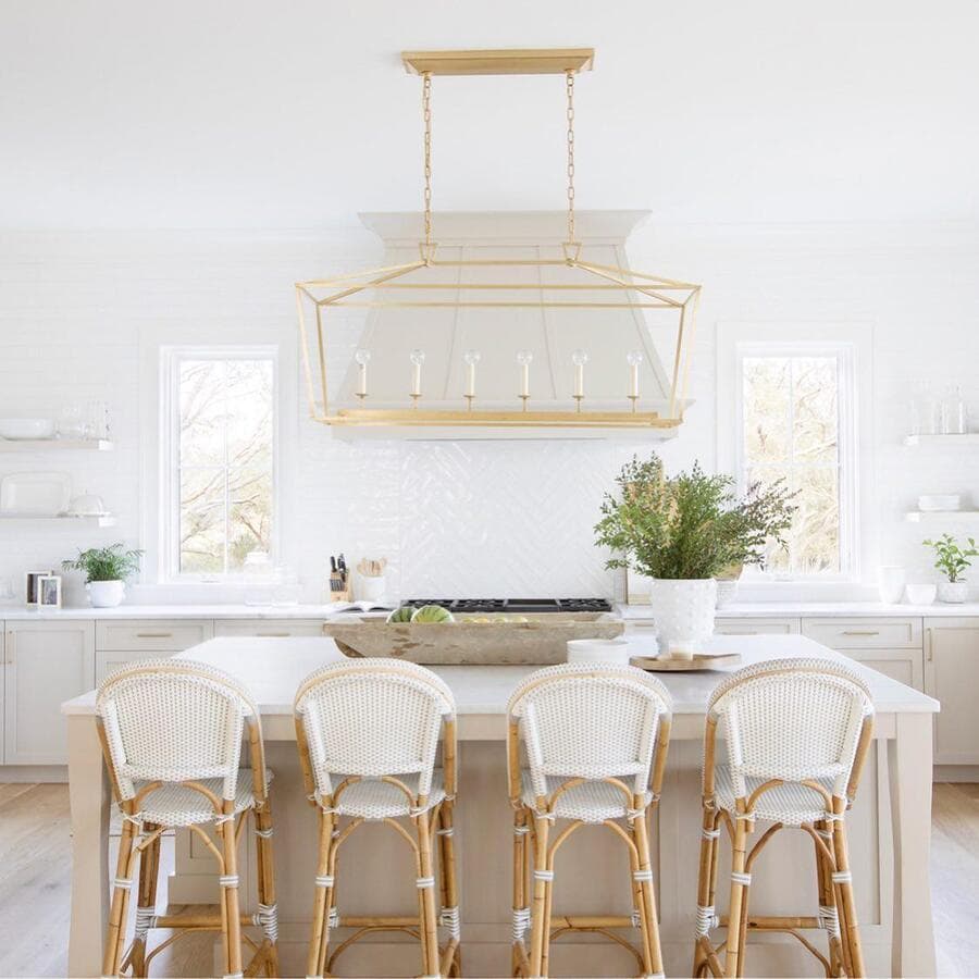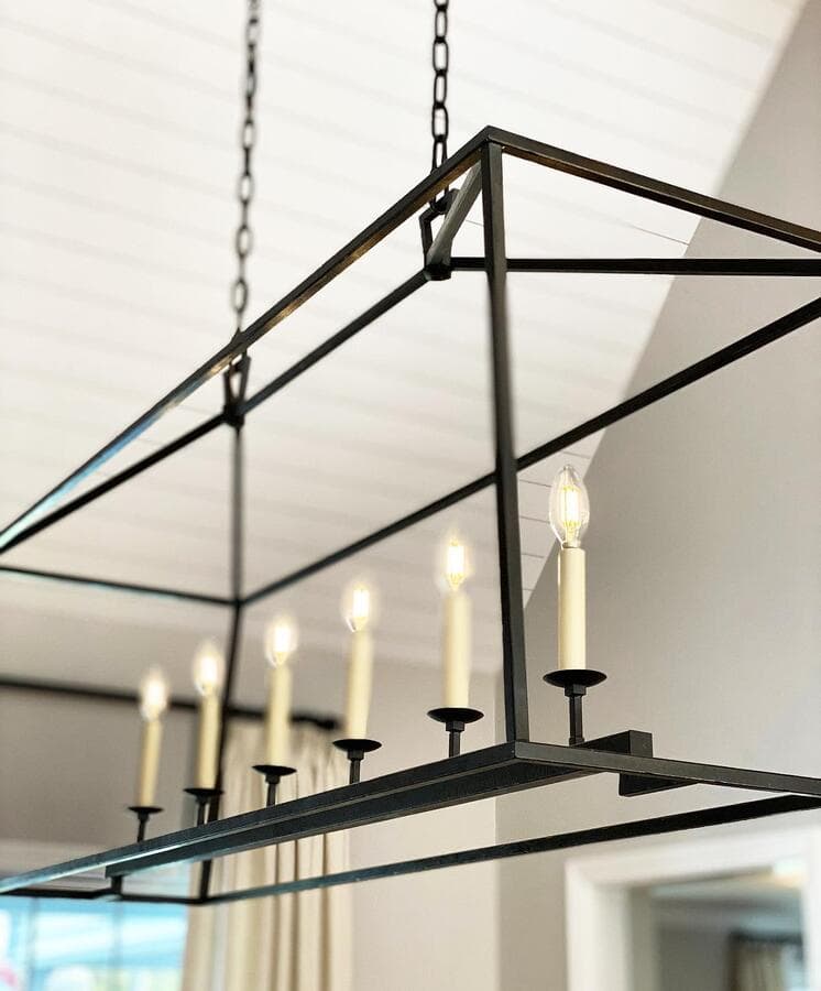 Ключ к определению размера удлиненного светильника - это пропорции. Мы рекомендуем выбирать светильник размером не более 2/3 длины стола или острова. Подумайте о том, чтобы повесить пару линейных светильников для освещения очень длинных поверхностей.