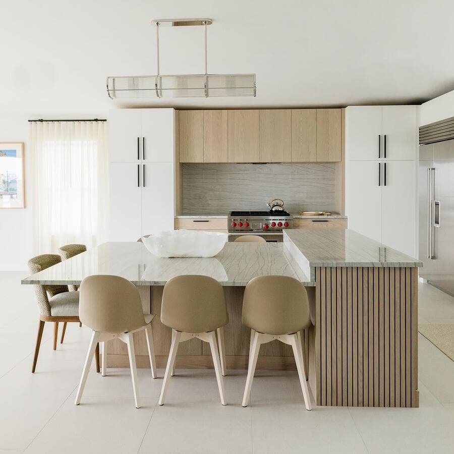 Ключ к определению размера удлиненного светильника - это пропорции. Мы рекомендуем выбирать светильник размером не более 2/3 длины стола или острова. Подумайте о том, чтобы повесить пару линейных светильников для освещения очень длинных поверхностей.