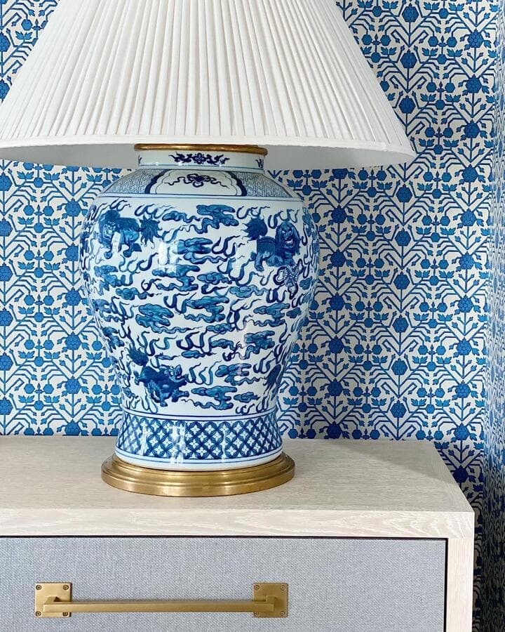 ОтделкаСиний и белый фарфорМатериал абажураШелк