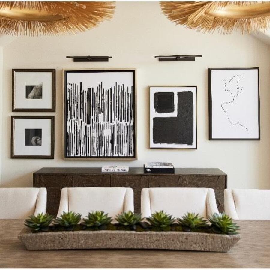 Как правило, ширина вашей подсветки для картин должна составлять примерно 1/2 ширины рамы освещаемого произведения искусства.